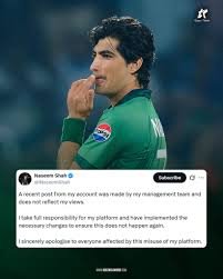 پاکستانی کرکٹ کی تاریخ میں دوکروڑروپے جرمانے کی سزا نے ہرطرف ہلچل مچادی ہے ، پی سی بی کی ڈسپلنری کمیٹی نے سینٹرل کرکٹ کی خلاف ورزی پر نسیم شاہ پر 2 کروڑ روپے کا جرمانہ عائد کیا ،فاسٹ بولر کو کرکٹ بورڈ نے 27 مارچ کو شوکاز نوٹس جاری کیا تھا، ان کے جواب کے بعد سماعت مکمل کی گئی۔پی سی بی کی تین رکنی کمیٹی نے ان کا مؤقف سننے کے بعد جرمانے کا فیصلہ سنایا ہے۔ نسیم شاہ کی غیر مشروط معذرت نوٹ کرلی گئی ہے۔علاوہ ازیں فاسٹ بولر کے سوشل میڈیا مشیر کو برطرف کردیا گیا ہے، پی سی بی نے سوشل میڈیا مشیر کو بلیک لسٹ کرنے کا بھی فیصلہ کیا ہے۔ناظرین کو اپ ڈیٹ کرتے چلیں نسیم شاہ نے ایکس پر وزیر اعلیٰ پنجاب مریم نواز کی اسٹیڈیم میں آمد پر متنازع بیان دیا تھاپی سی بی کی طرف سے جرمانے کے بعد قومی فاسٹ باؤلر نسیم شاہ کا ٹوئٹ سامنے آگیا۔جس میں انہوں نےکہا کہ اپنے پلیٹ فارم کےغلط استعمال سےمتاثر لوگوں سے معذرت خواہ ہوں۔انہوں نے لکھا کہ اکاؤنٹ سے حالیہ پوسٹ میری انتظامی ٹیم نے کی تھی جو میرے خیالات کی عکاسی نہیں میں اپنے پلیٹ فارم کے استعمال کی پوری ذمہ داری لیتا ہوں۔نسیم شاہ نے واضح کیا کہ ذمہ داری یقینی بنانے کیلئے ضروری تبدیلیاں کی ہیں کہ ایسا دوبارہ نہ ہو۔