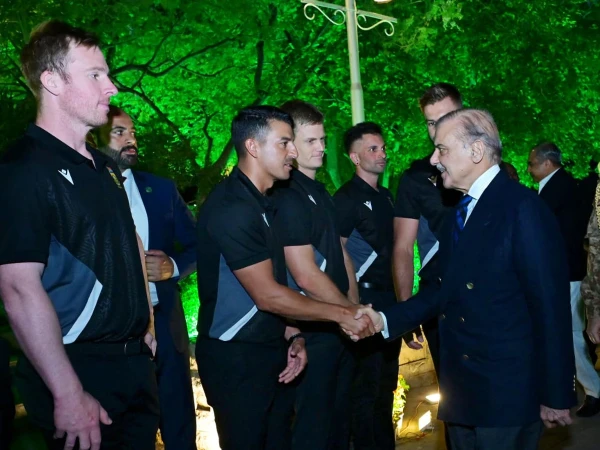 وزیراعظم ہاؤس میں دیے گئے عشائیے میں شہباز شریف نے مہمان اور قومی ٹیم کے کھلاڑیوں سے فرداً فرداً مصافحہ کیا۔
